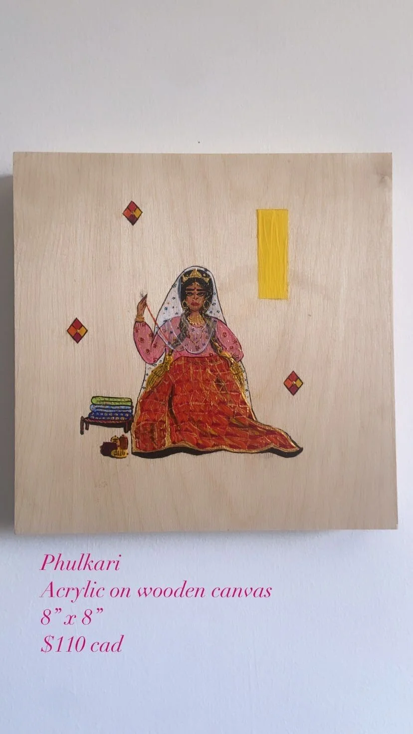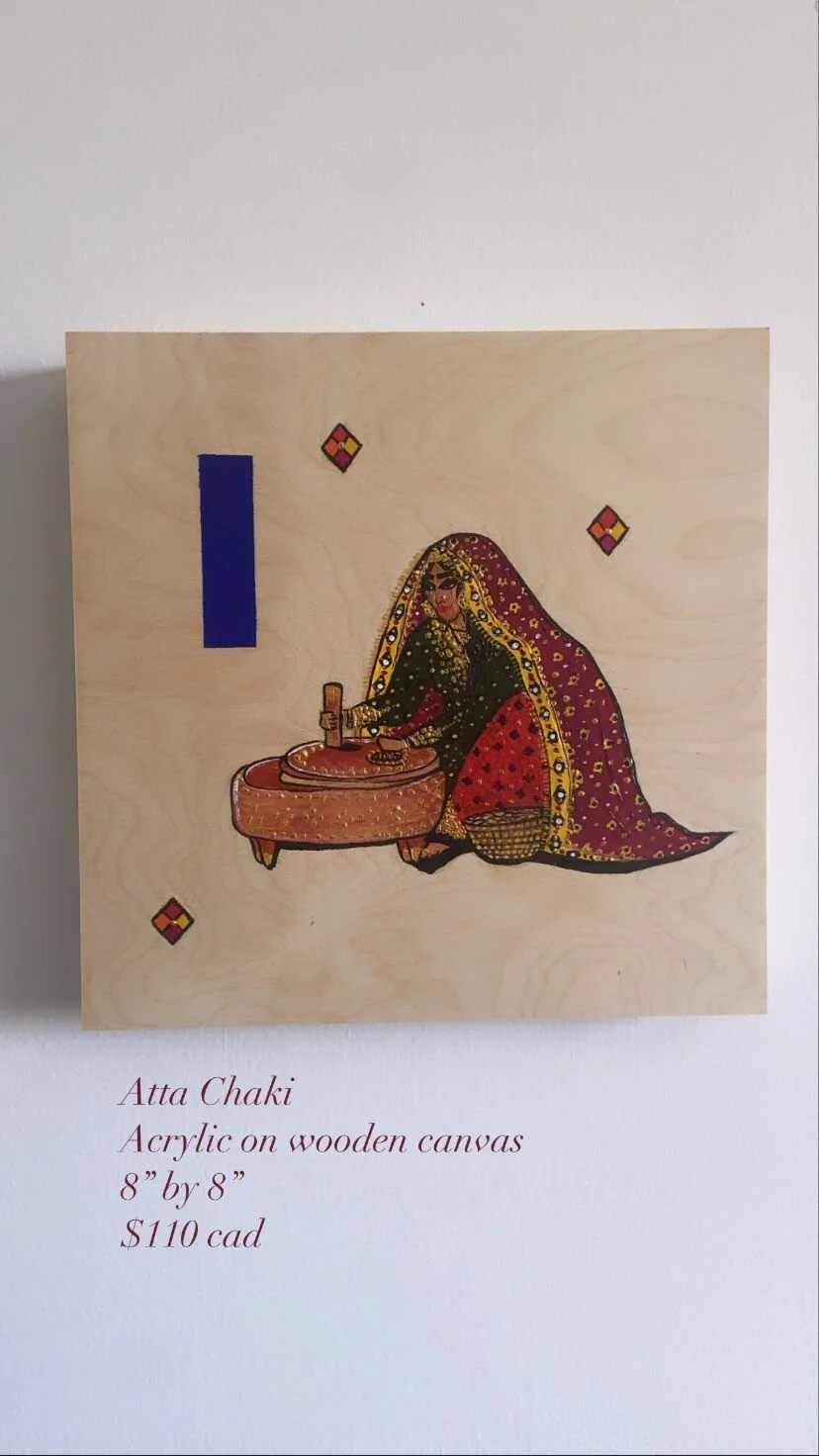ORIGINAL PAINTINGS › Phulkari, Charka, Atta Chaki Image 1 of 3 Image 2 of 3 Image 3 of 3 Phulkari, Charka, Atta Chaki $110.00 SOLD OUT PAINTING: PHULKARI CHARKA CHAKKI ATTA SOLD OUT Added!